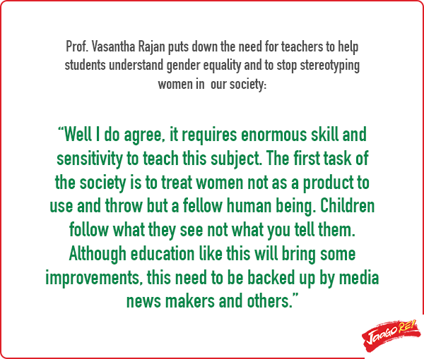 We would love to hear your views or experiences on gender issues. If you know about a school that conducts gender sensitisation workshops for the children, or has incorporated it into their syllabus, do let us know!