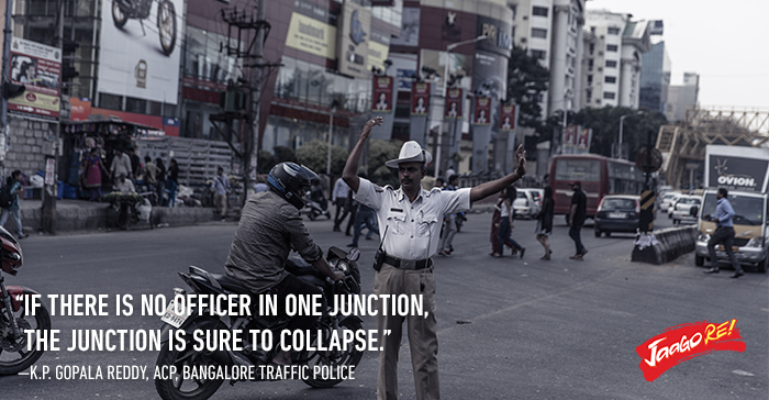 Every junction in our cities need constant monitoring. Our disregard to traffic rules make our roads dependent on the Traffic Police. Mr Gopala Reddy said that if there is no officer in one junction, the junction is sure to collapse. You can imagine the kind of pressure the traffic police officers go through. While a normal person needs a haemoglobin level of 11-16, our traffic police officers have less than 10 because of the constant exposure to both, pollution and natural elements like sun and rain.
