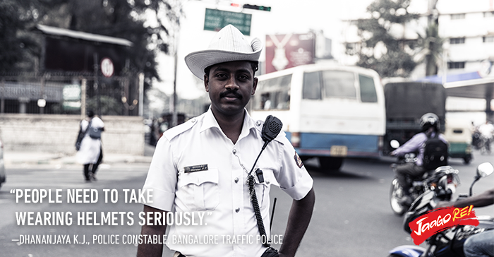 All traffic rules are important, and we need to understand that these rules are in place to ensure our safety. Dhananjaya K.J., Police Constable at Bangalore Traffic Police, pointed out 3 rules that he thinks everyone must follow – wearing helmets, stopping at red and yellow signals, and following lane discipline.